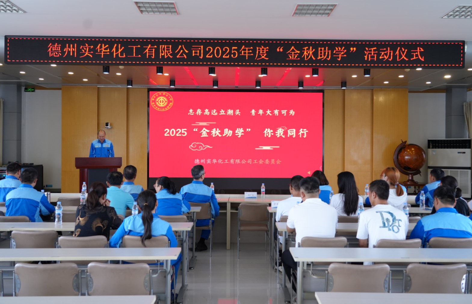 金秋八月,硕果盈枝。为切实传递公司党委对广大职工及其家庭的关怀关爱,增强职工归属感、幸福感,德州实华工会于8月20日举办2025年度“金秋助学”活动,向在今年升学考试中取得优异成绩的职工子女表示热烈祝贺并发放助学奖励。公司党委副书记、副总经理周厂生,纪委书记尚健,相关部门领导及各位高考学子、家长出席活动。