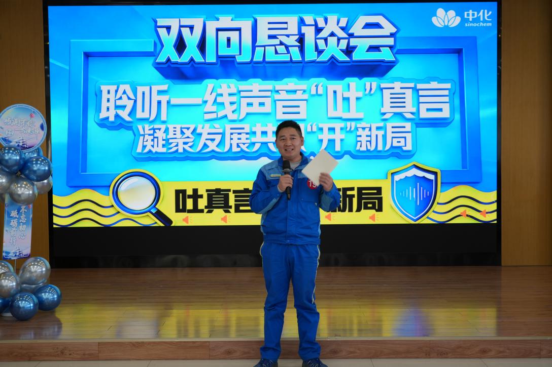 在核心“吐槽”环节,33名来自生产一线、技术岗位及基层管理岗位的代表轮番发言。大家围绕运营流程优化、安全环保实践、设备稳定运行、后勤服务保障等议题,以情景剧、脱口秀等生动形式直抒胸臆,真实反映工作中的堵点、难点,“辣味”十足又不失真诚。相关部门负责人全程聆听、即时回应,充分体现了公司不回避、真落实的务实作风。