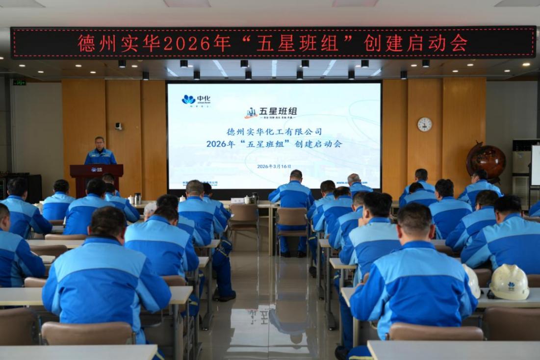 3月16日,德州实华2026年“五星班组”创建启动会顺利召开,会议对企业年度“五星班组”创建工作进行全面部署。德州实华领导班子成员,各车间、部室负责人,各工段长及相关人员参会。